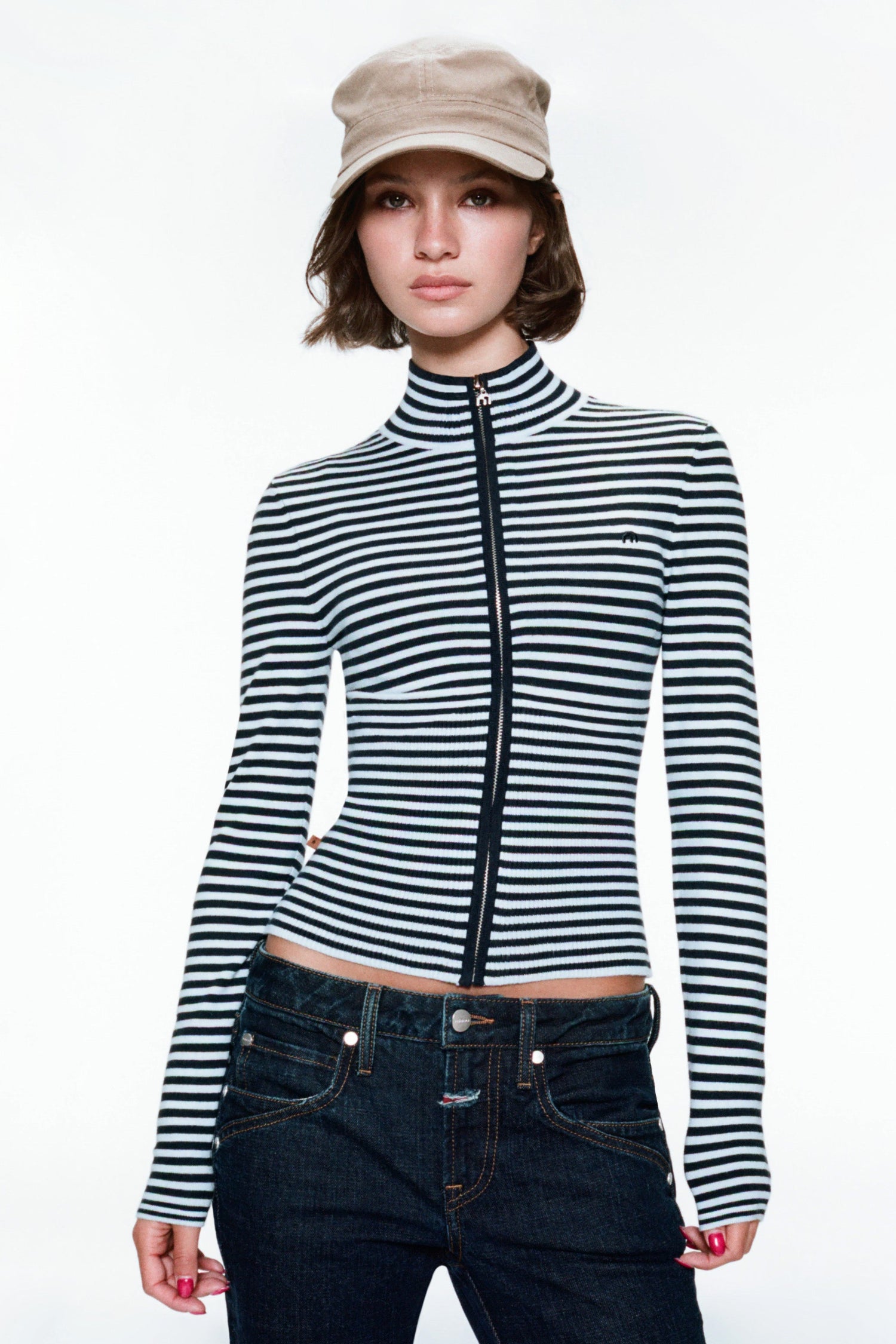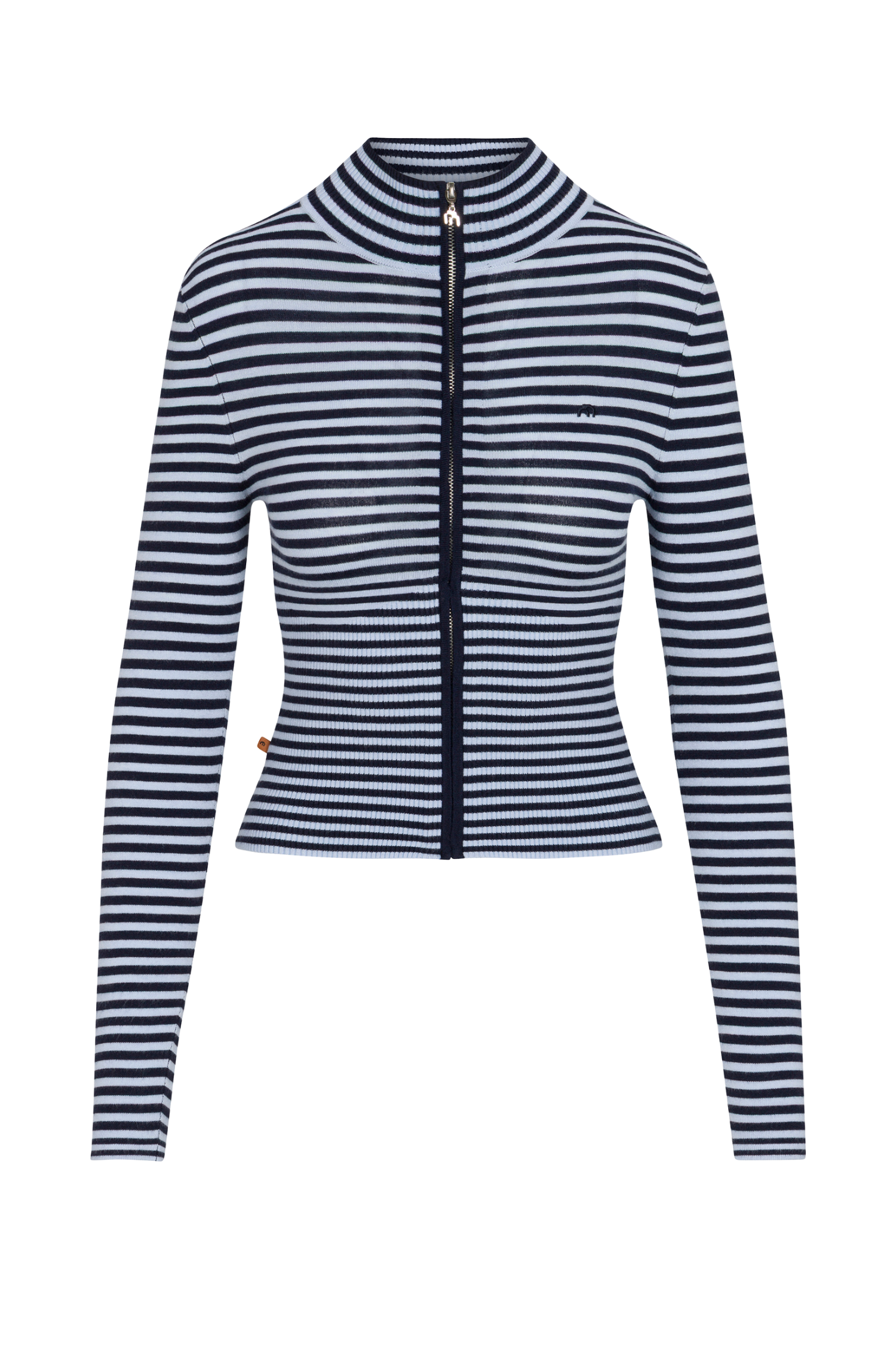 The cult-favorite Vlad Zip Up in back in navy and baby blue stripe. A comfy, sensual knit for all seasons.