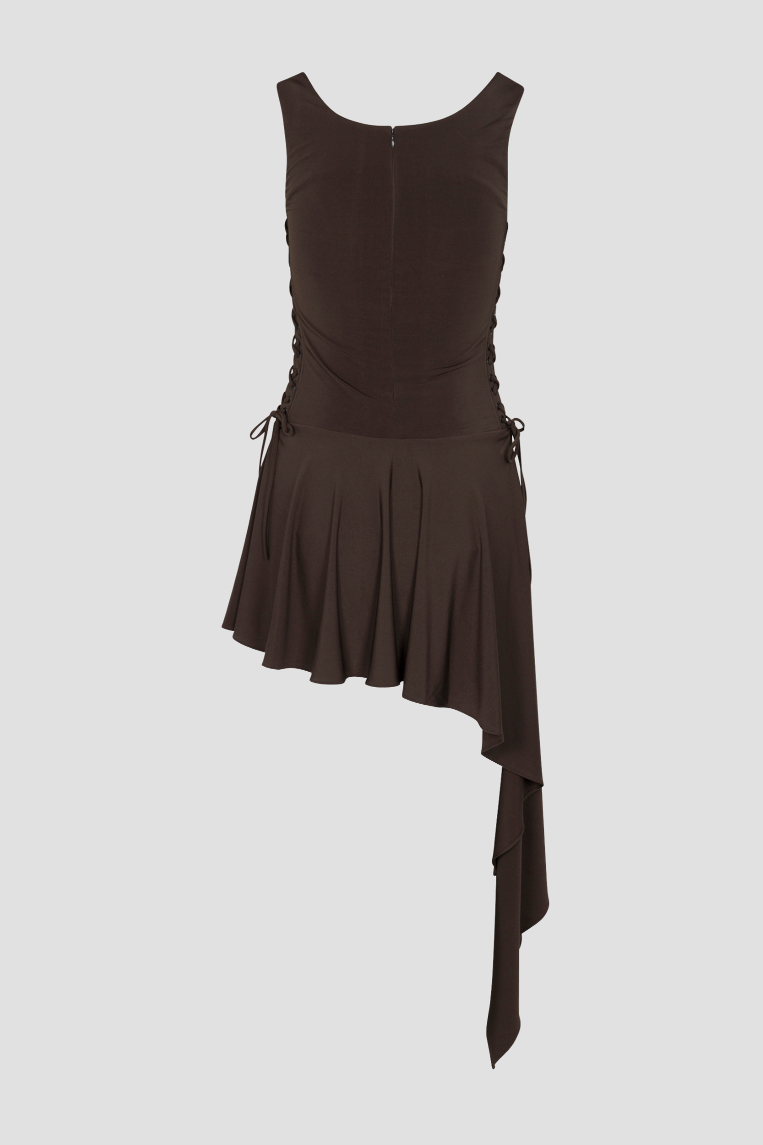 Our best-selling corset, now in dress form. The Imogene Dress has a beautiful corseted bust with lace-up sides and a dramatic asymmetrical hem. Talk about hot chocolate.