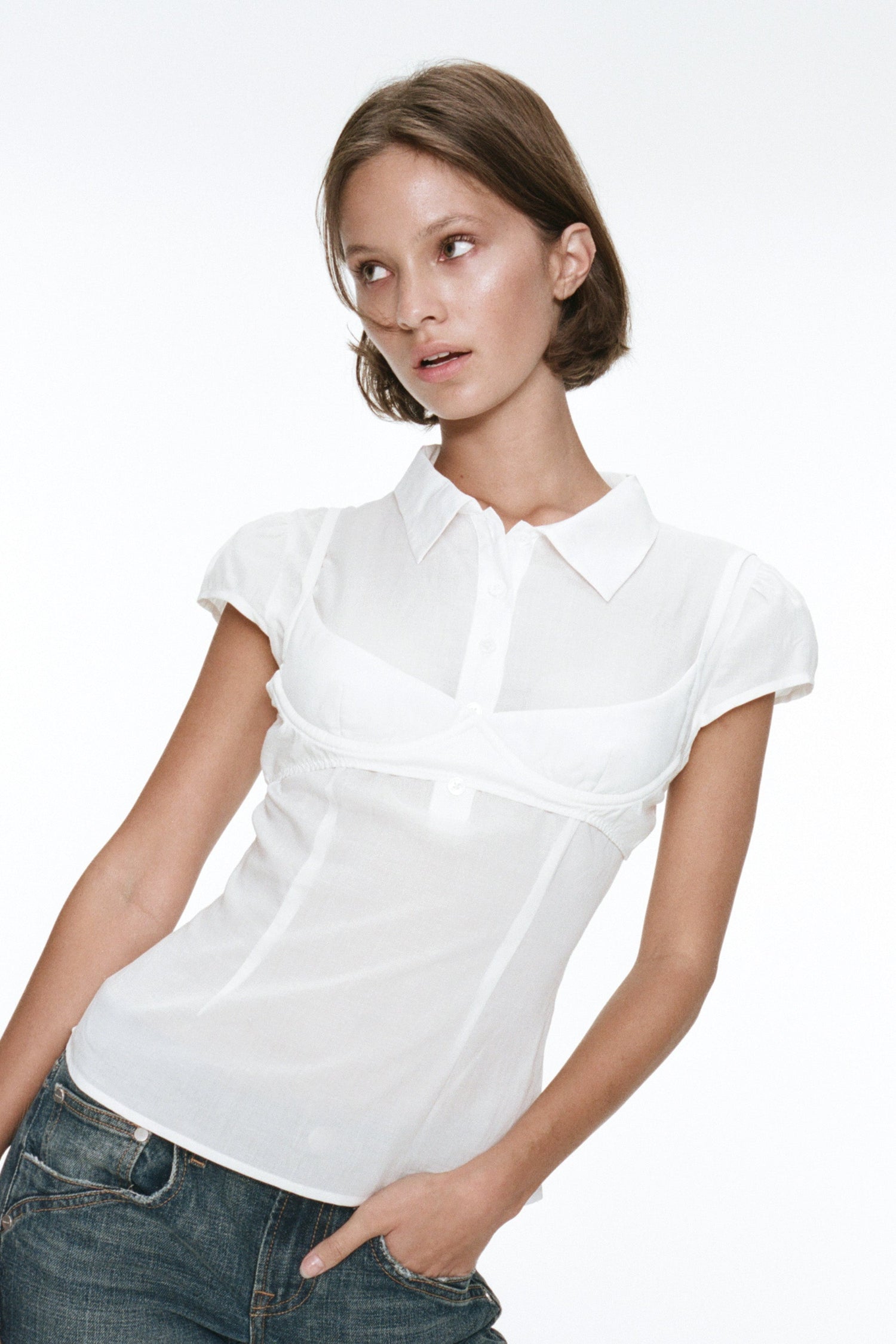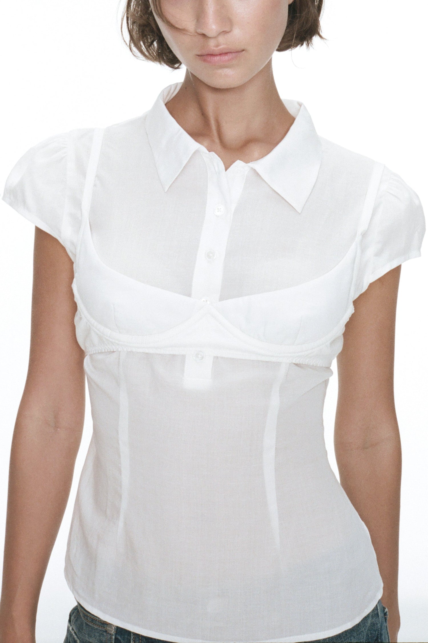 The Hudson Button Down is a soft, semi sheer button-up featuring an external bra detail layered over a softly structured silhouette for a modern, day-to-night feel. Simple yet striking, she’s the statement essential you’ll reach for again and again.