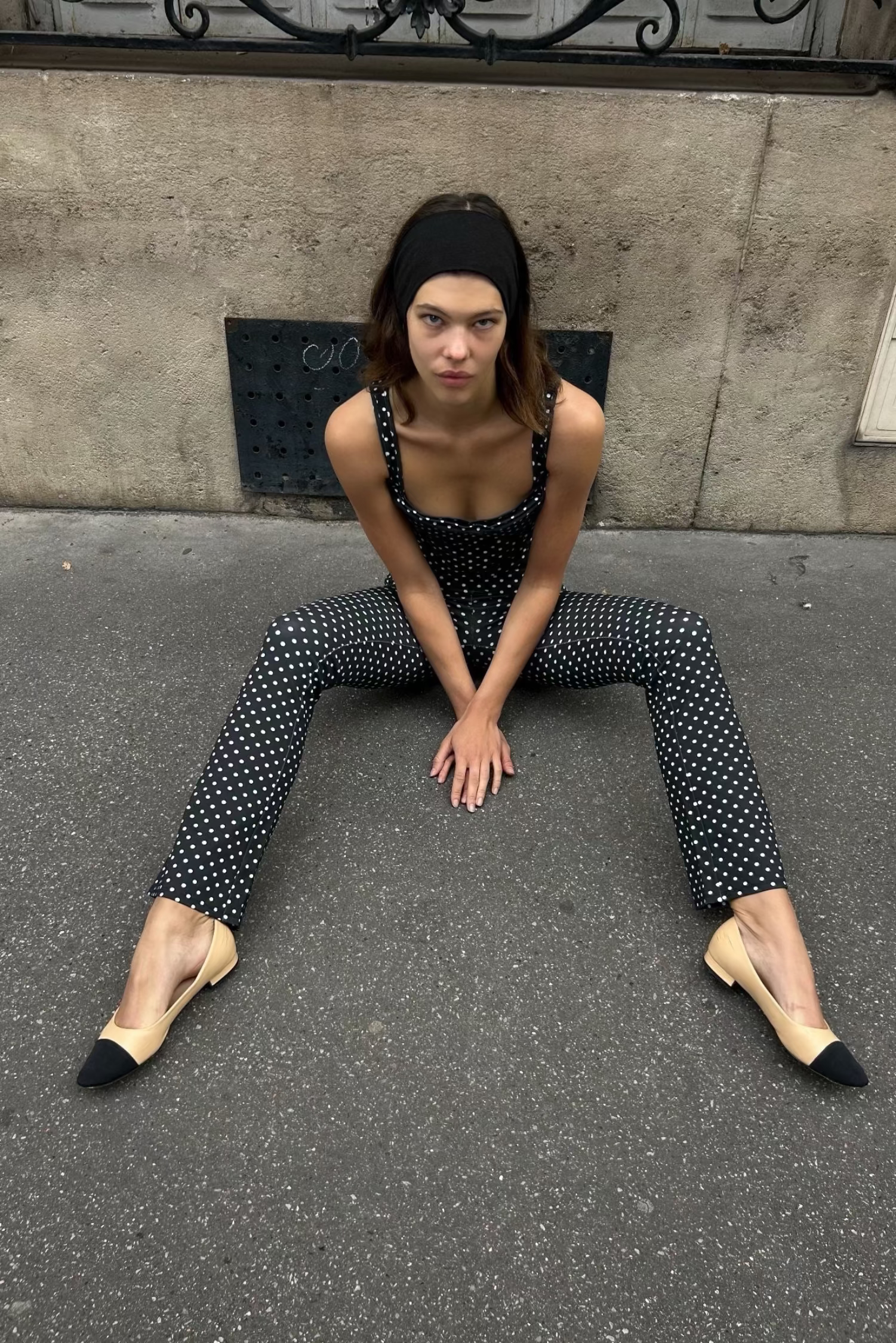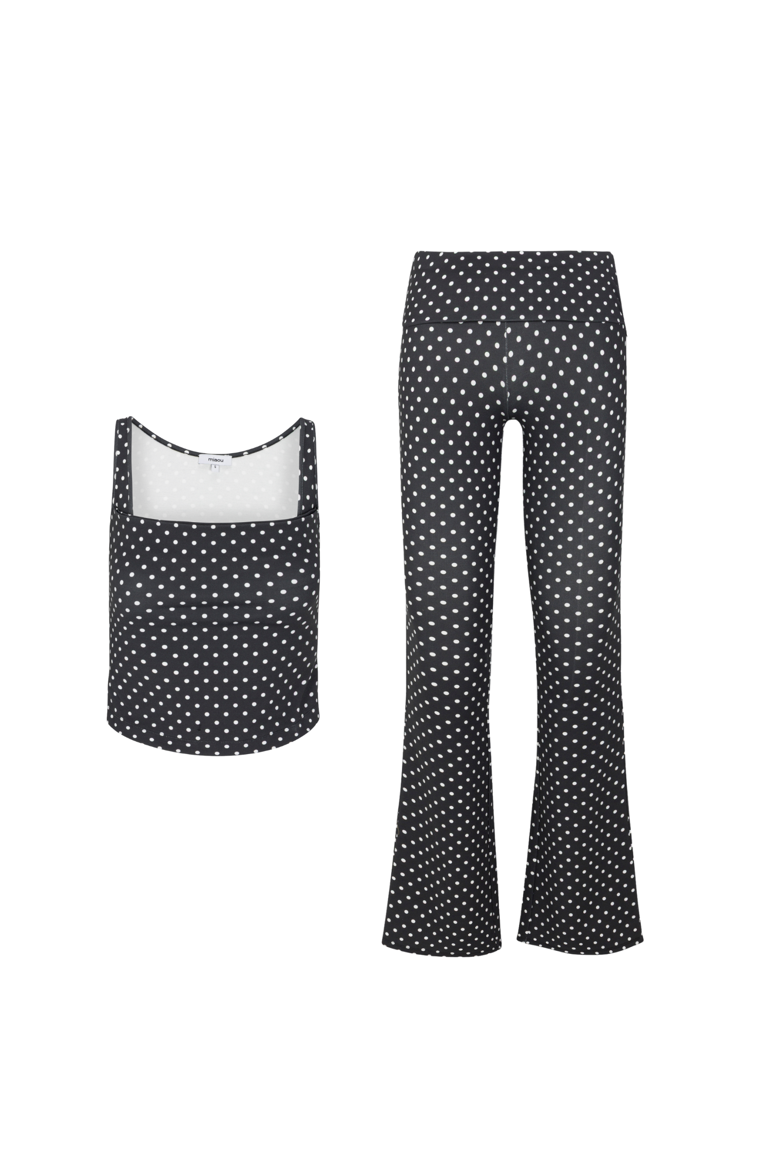 Set includes Luna Top and Alba Pant in Black and White Polka Dot.